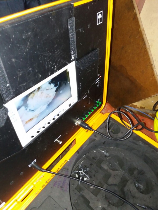 <내시경 카메라로 변기 배관 살펴보는 모습>