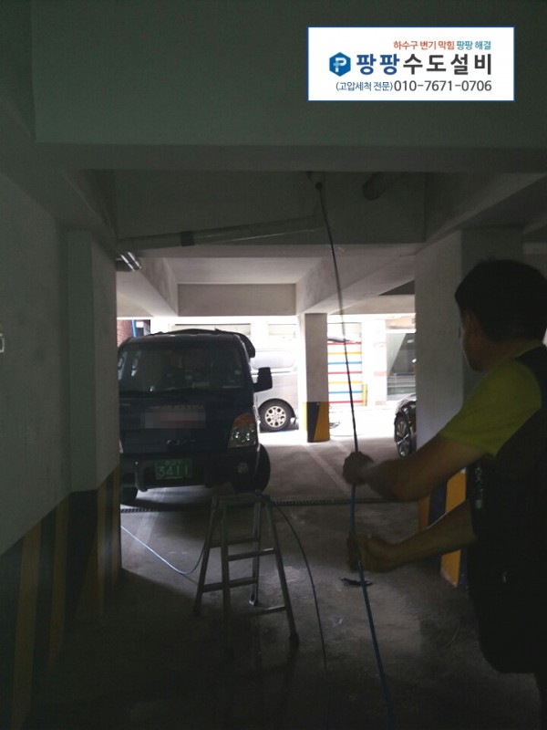 배관막힌 것이 빌라 1층으로 모여서 1층에서 배관 막힘 뚫는 작업을 했습니다.